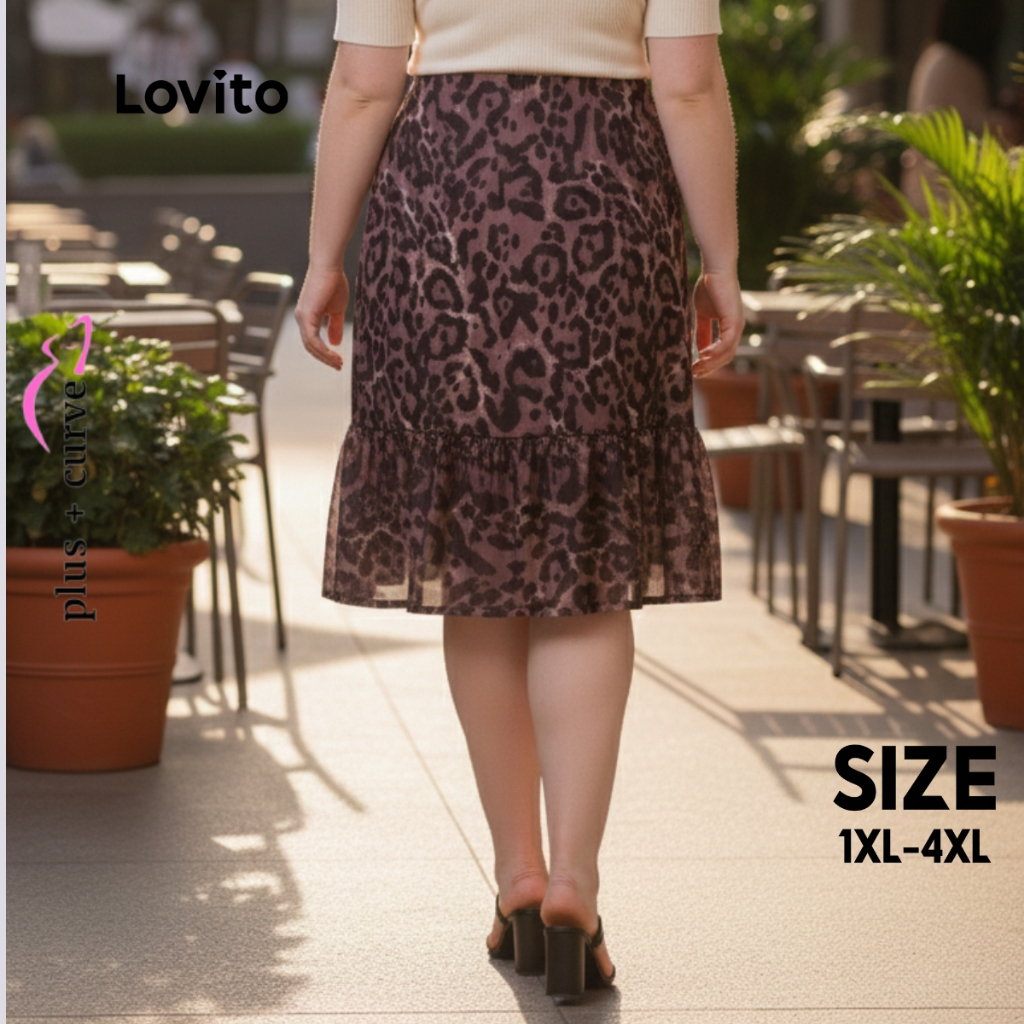 Lovito Saia Feminina Midi com Babado Barra Animal Print Plus Size SKB267BRL296