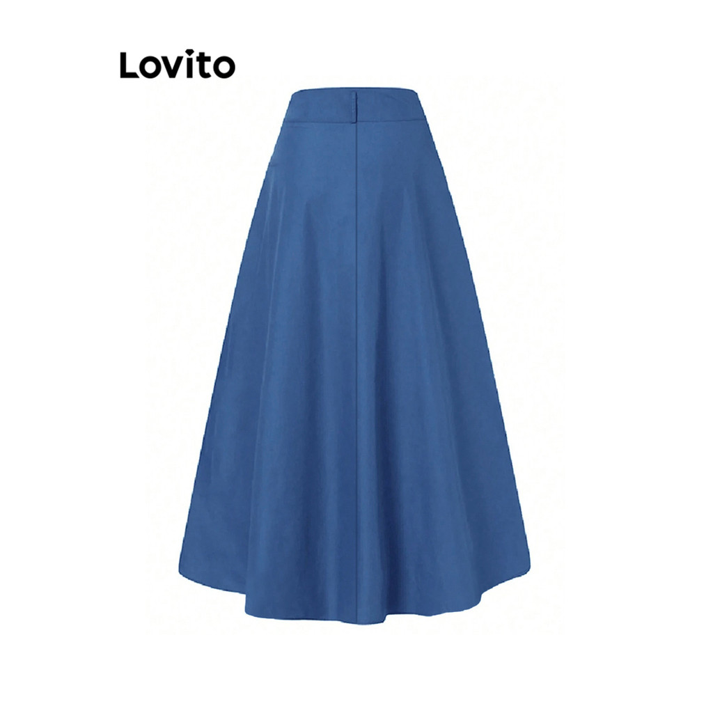 Lovito Saia Plus Size Curva Casual Lisa Com Botões Para Mulheres LNL83250