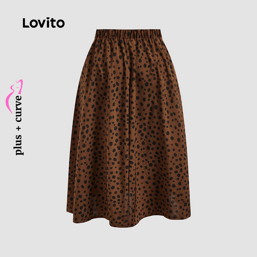Lovito Saia Plus Size Curva Elegante Leopardo Babado Bainha para Mulheres LBL22335