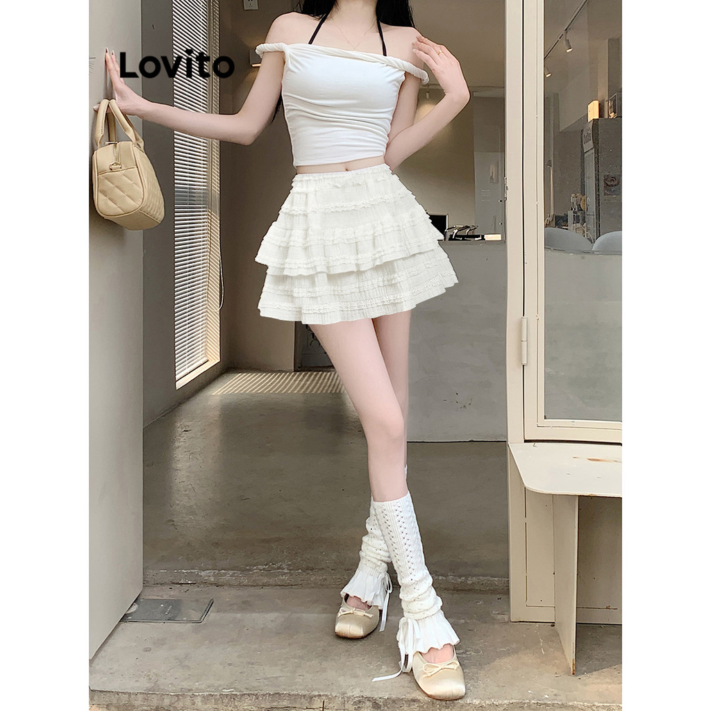 Lovito Saias Casuais Com Babados Lisos Para Mulheres L88AD161