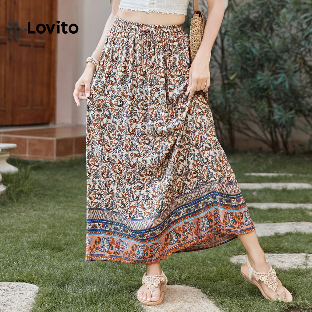 Lovito Saias Casuais Com Estampa Tribal, Saias De Verão/primavera Para Mulheres L129ED108