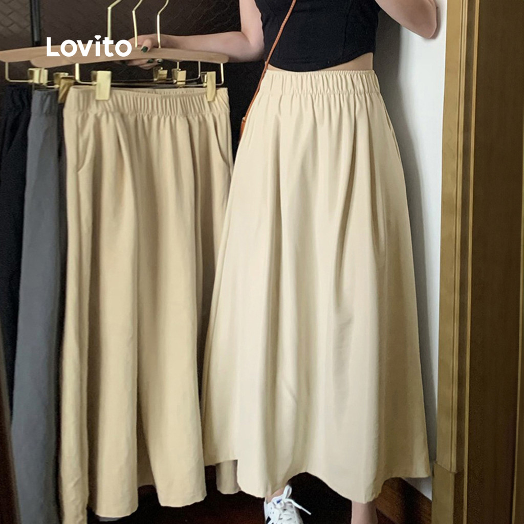 Lovito Saias Casuais Drapeadas Primavera/verão Saias Leves Caqui para mulheres L151AD287