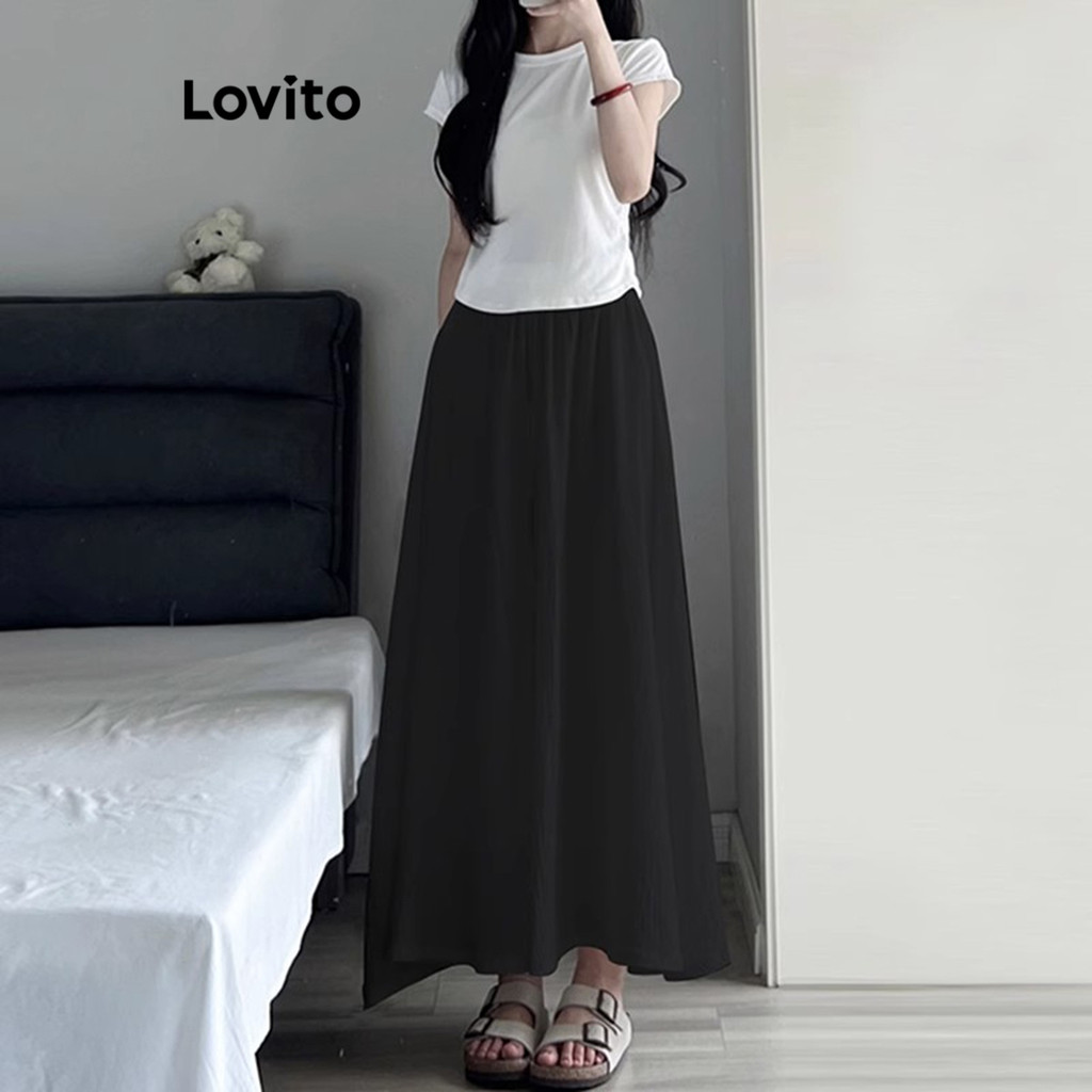 Lovito Saias Casuais Saias Lisas Evasê Para Mulheres LNA25050 (Multicolorido)