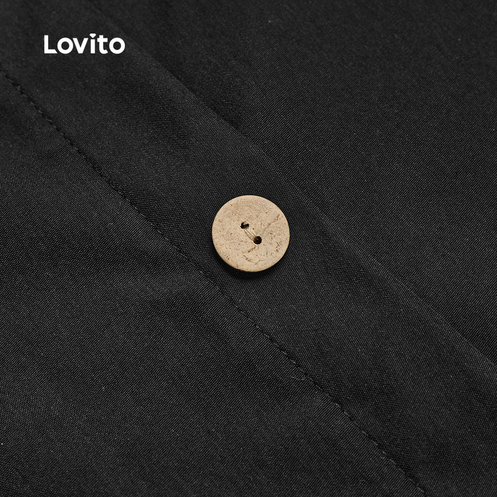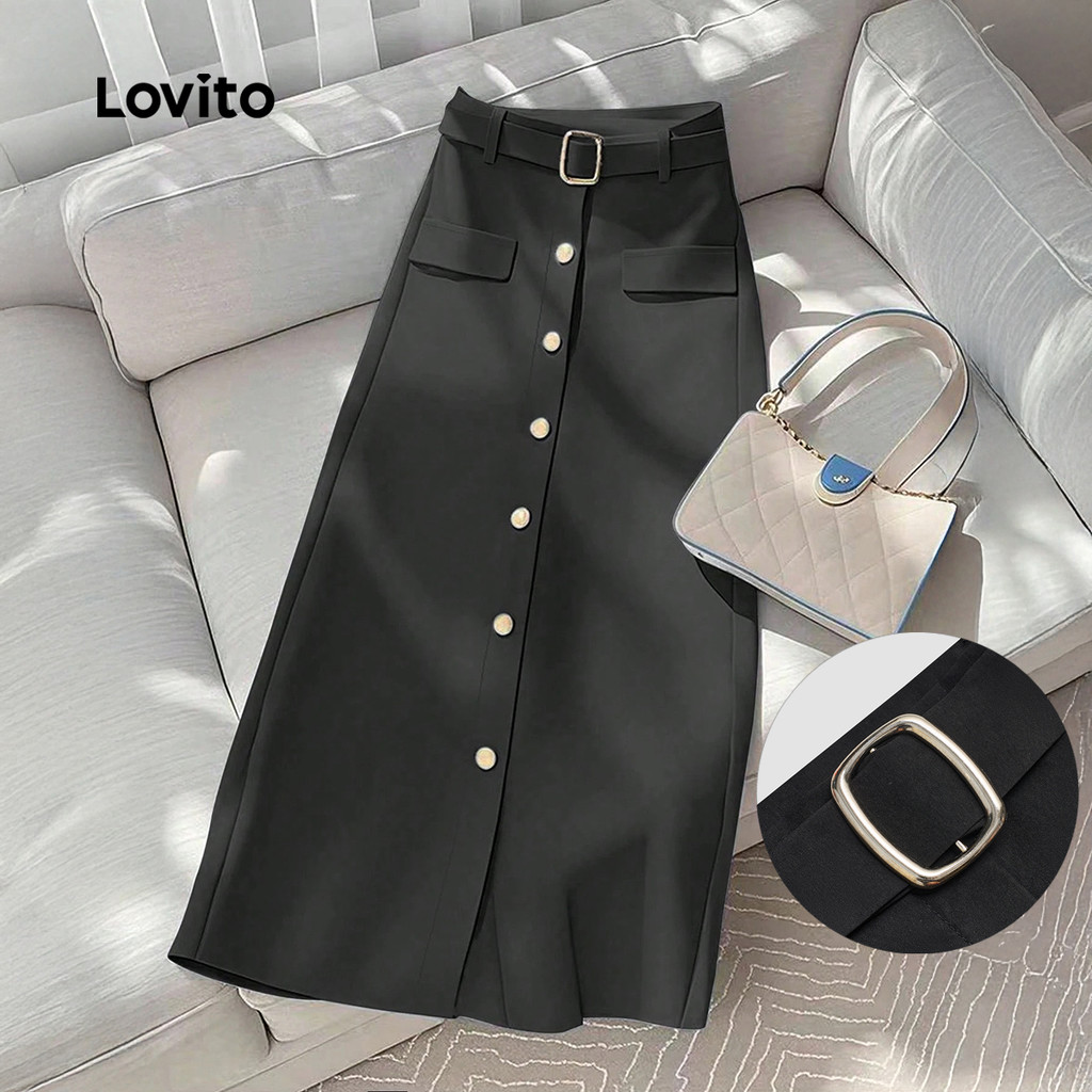 Lovito Saias Elegantes Botão Frontal com Cinto Primavera/verão Saias Pretas para mulheres. LBL33079