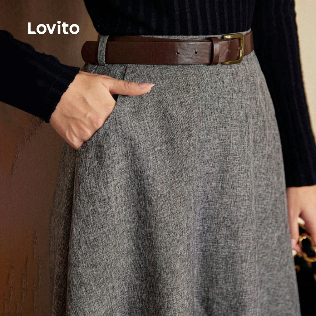 Lovito Saias Elegantes com Bolso Saias de Toda Estação Cinza Escuro para Mulheres L158AD225