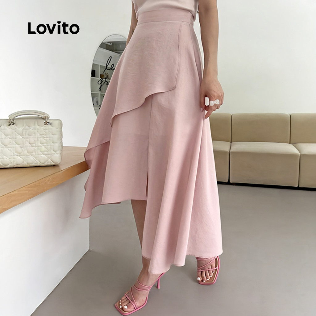 Lovito Saias Elegantes Dupla Camada Assimétrica Rosa para Mulheres L171AD075