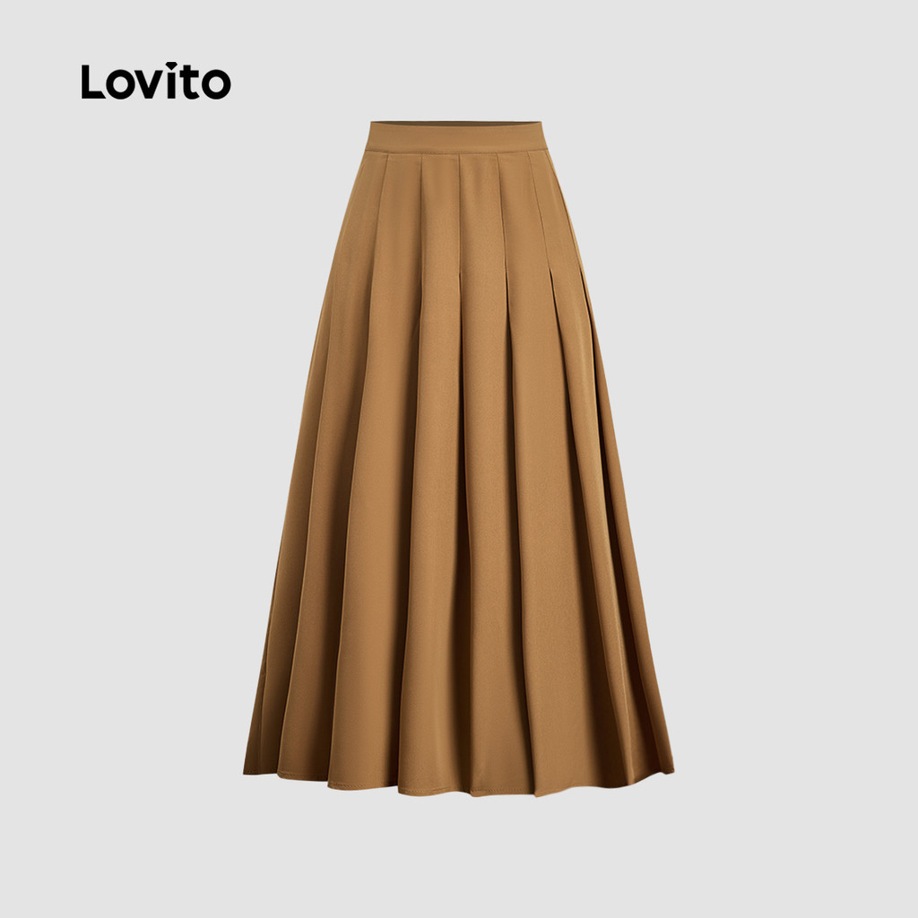 Lovito Saias Elegantes Plissadas com Zíper para Primavera/verão Saias Khaki para Mulheres LBL33118