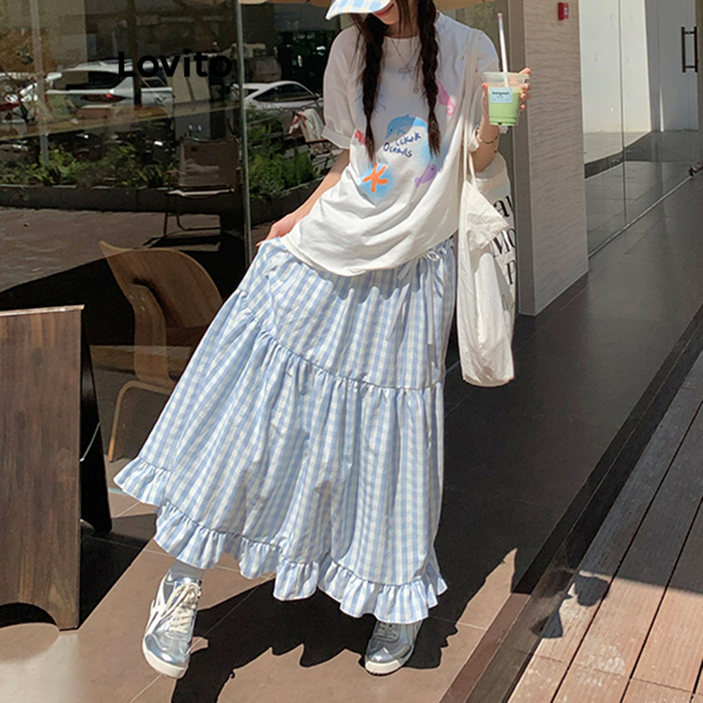 Lovito Saias Fofas Saia Xadrez Com Gravata Frontal Para Mulheres L114AD012