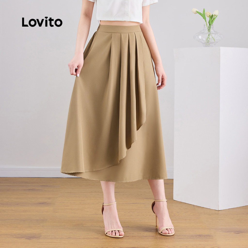 Lovito Saias plissadas lisas elegantes para mulheres L124AD473