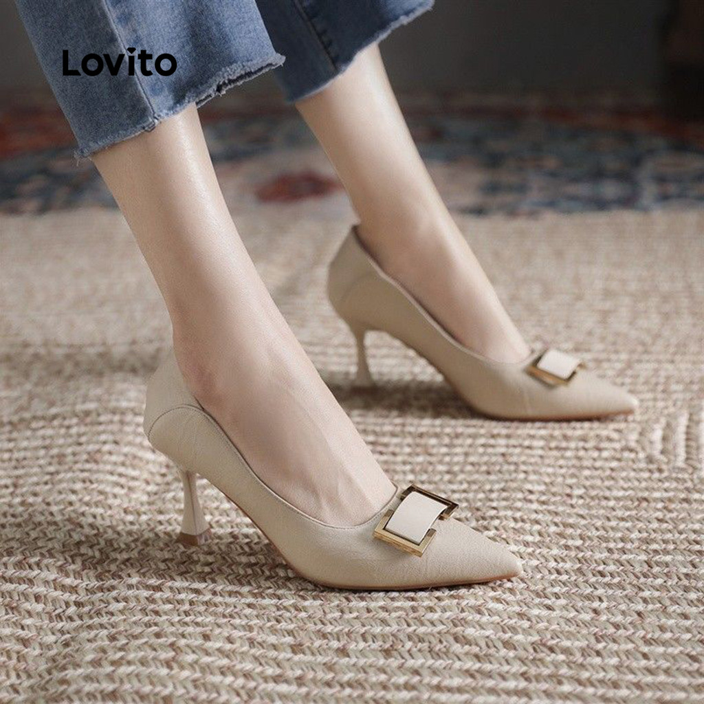 Lovito Saltos Elegantes com Fivela de Metal Simples Clássicos e Versáteis Preto para Todas As estações LFA87067