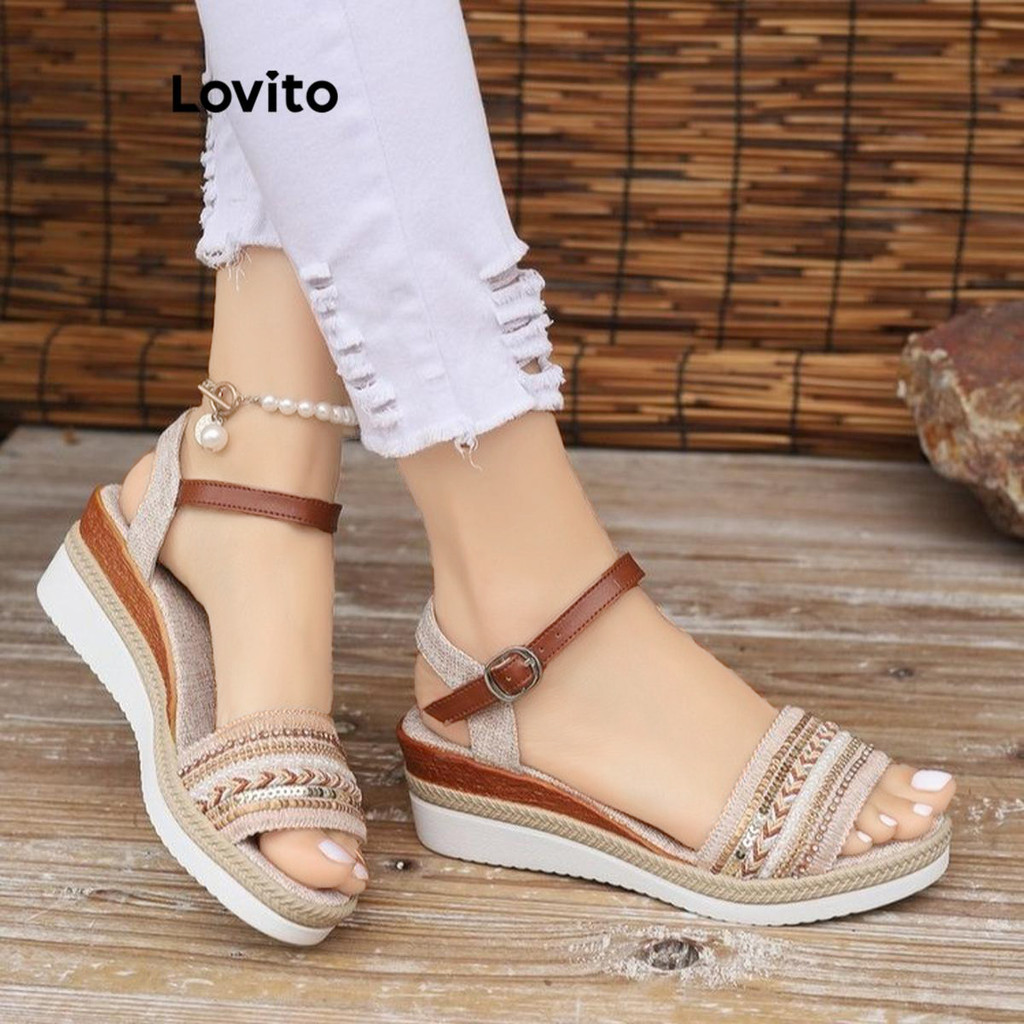 Lovito Sandálias Boho para mulheres com sola grossa e design elegante LFA65321