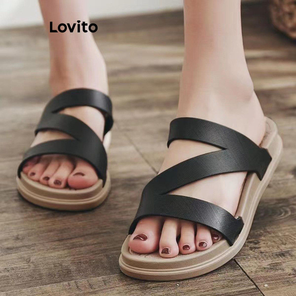 Lovito Sandálias planas casuais de palha com gravata lisa para mulheres LFA31014\6