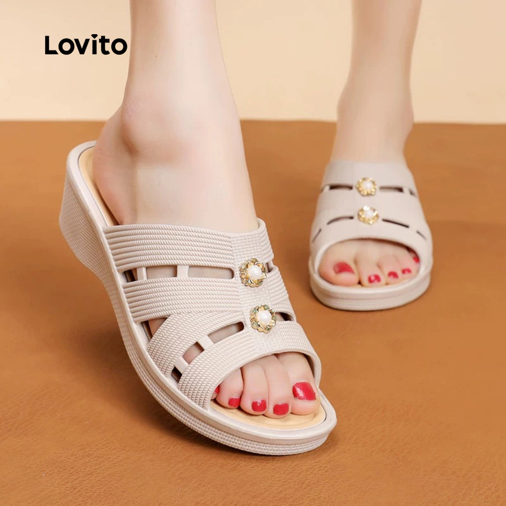 Lovito Sandálias Planas Simples e Elegantes para Mulheres LFA109135