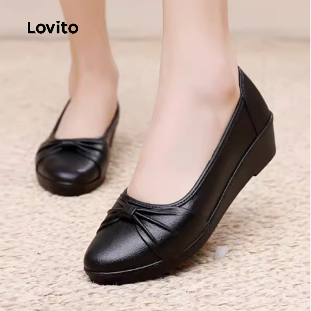 Lovito Sapatas Baby Meia Preppy para Mãe Sapatos de Sola Macia Simples para Todas As Estações pretos LFA85051