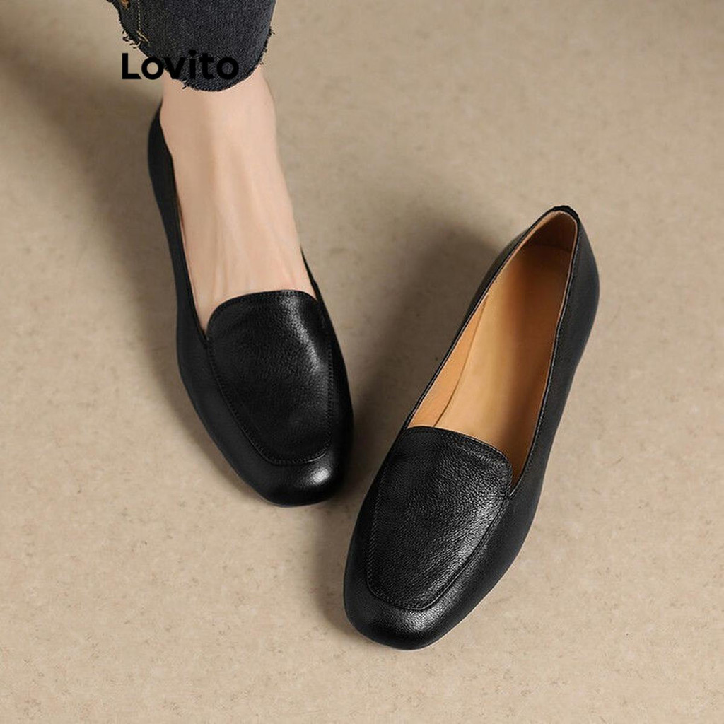 Lovito Sapatilhas femininas casuais em couro leve e macio, estilo simples e confortável, modelo LFA70184