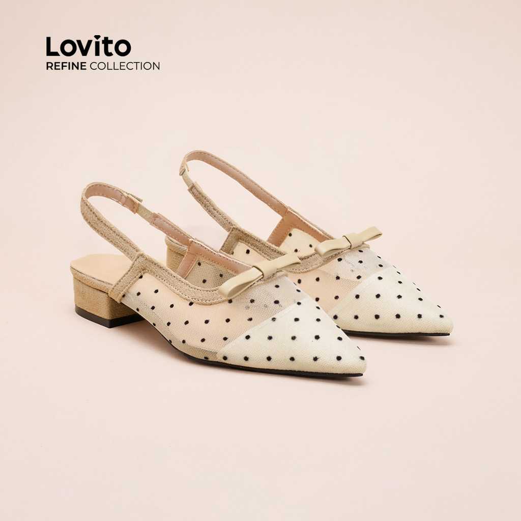 Lovito Sapato Flat Casual Feminino com Laço Liso, Malha Francesa Respirável e Bico Pontudo, Estampa de Bolinhas LFA70175