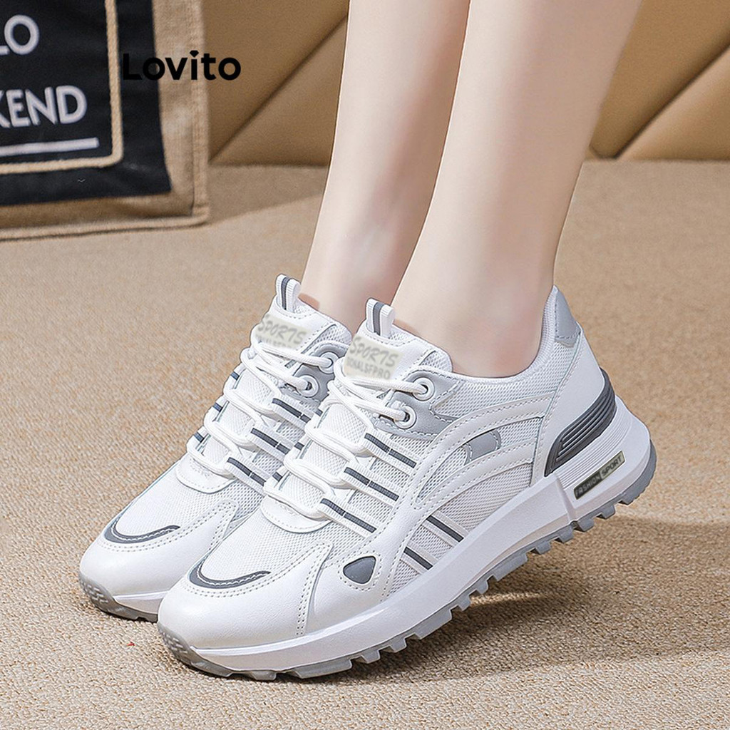 Lovito Sapatos casuais lisos Forrest Gump tênis Colorblock para mulheres LFA69036