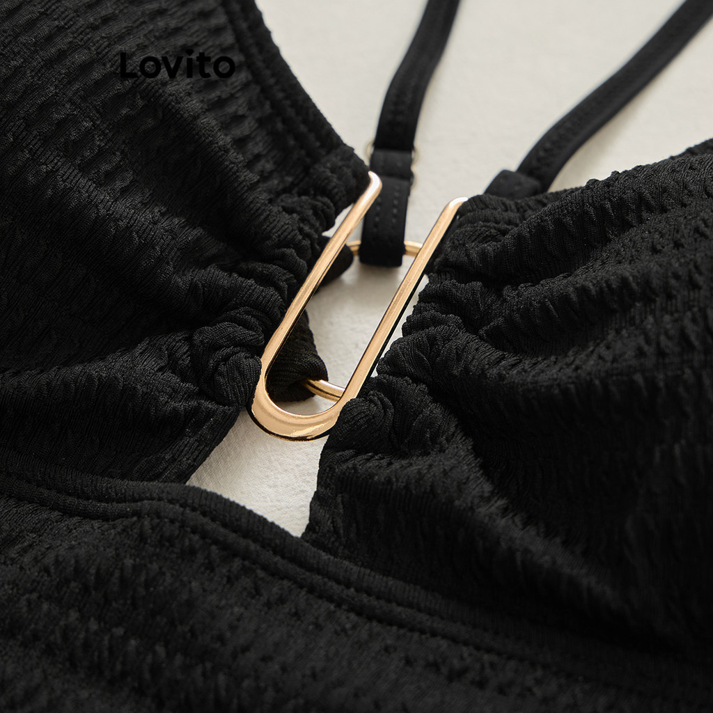 Lovito Sexy One Pieces Metal Recortado Verão/Primavera Uma Peça Para Mulheres LBL20675