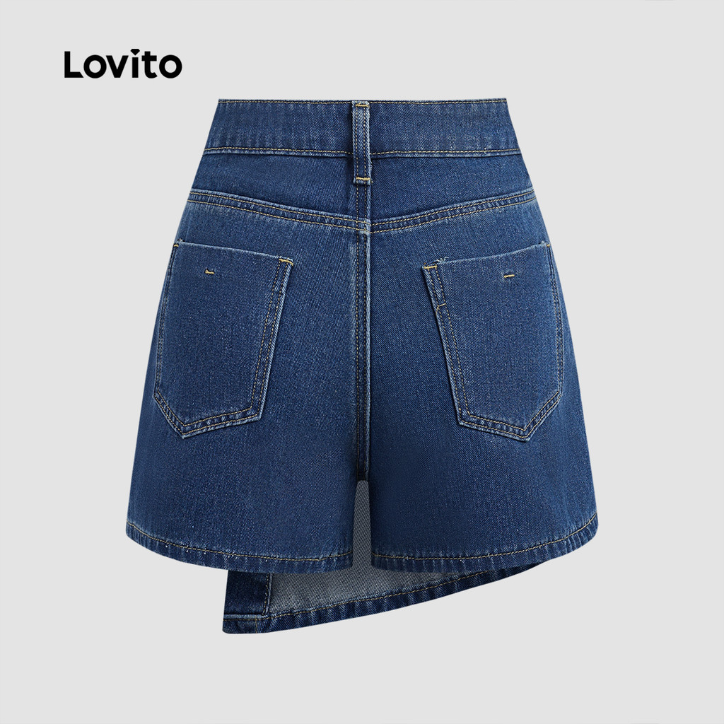 Lovito Short feminino jeans lavado casual com bolso liso L129ED668