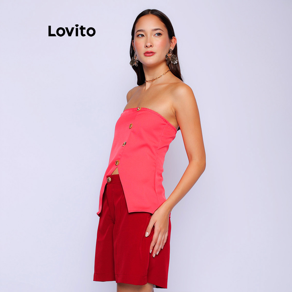 Lovito Shorts Alfaiataria Vermelho Elegante com Pregas Femininos LB1061BRL1091