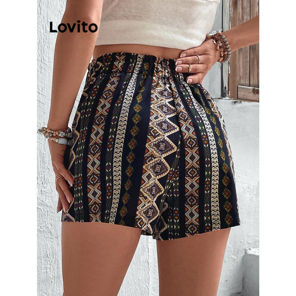 Lovito Shorts Boho Tropical Smocked Shorts Para Mulheres LSL01015 (Multicolorido)
