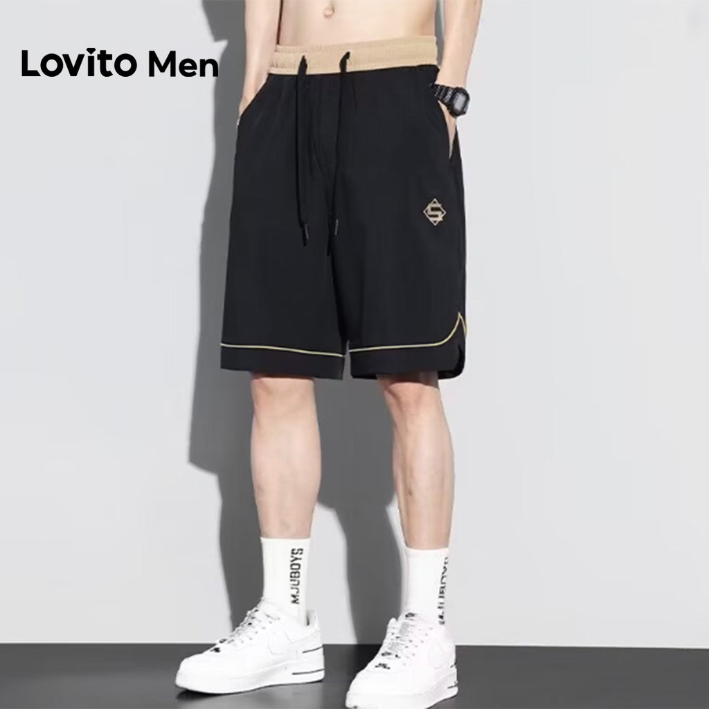 Lovito Shorts Casuais com Amarração Contrastante Shorts Pretos para Homens Primavera/Verão LNE127073