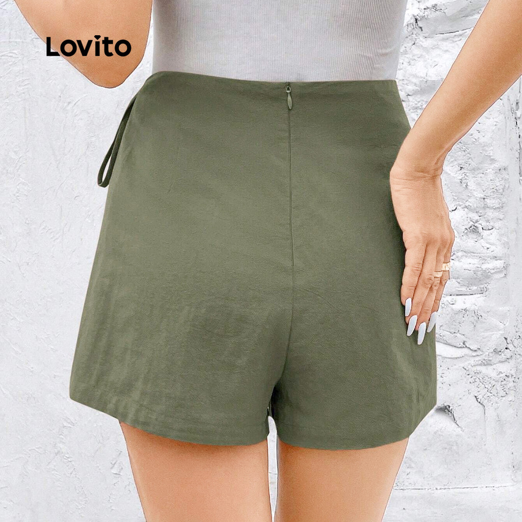 Lovito Shorts Casuais com Amarração Primavera/verão Verde para Mulheres L164ED339