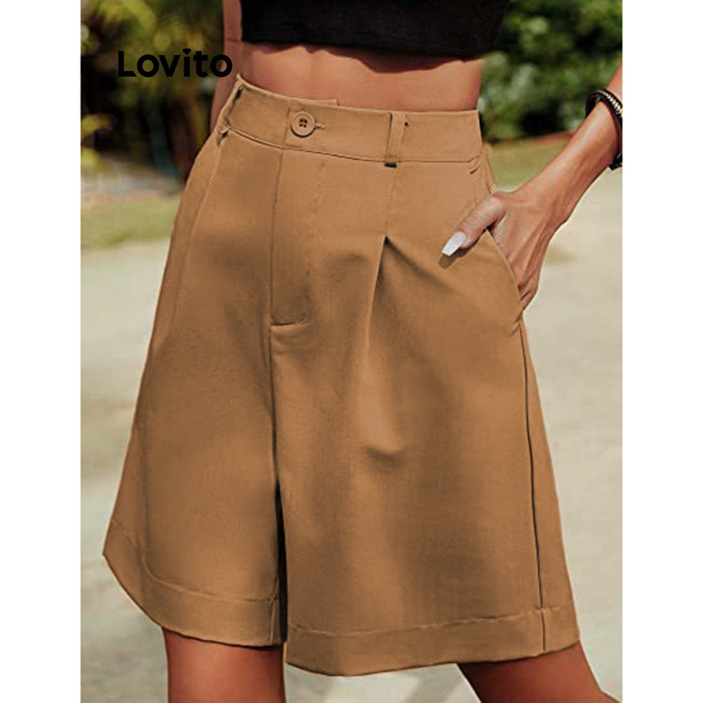 Lovito Shorts Casuais Com Bolso Liso E Plissado De Verão Para Mulheres LNL43146