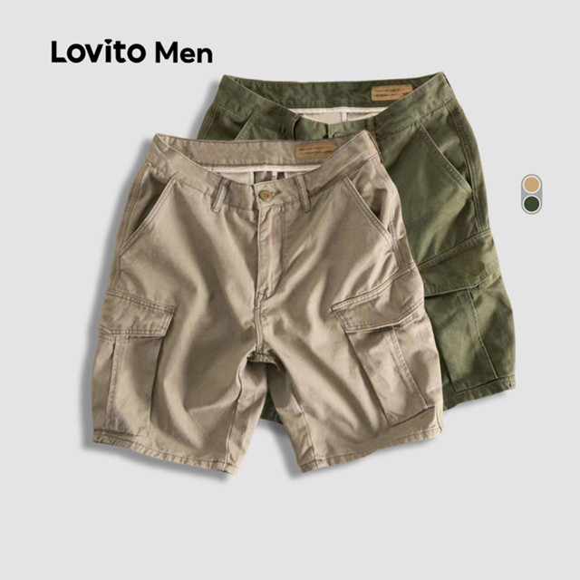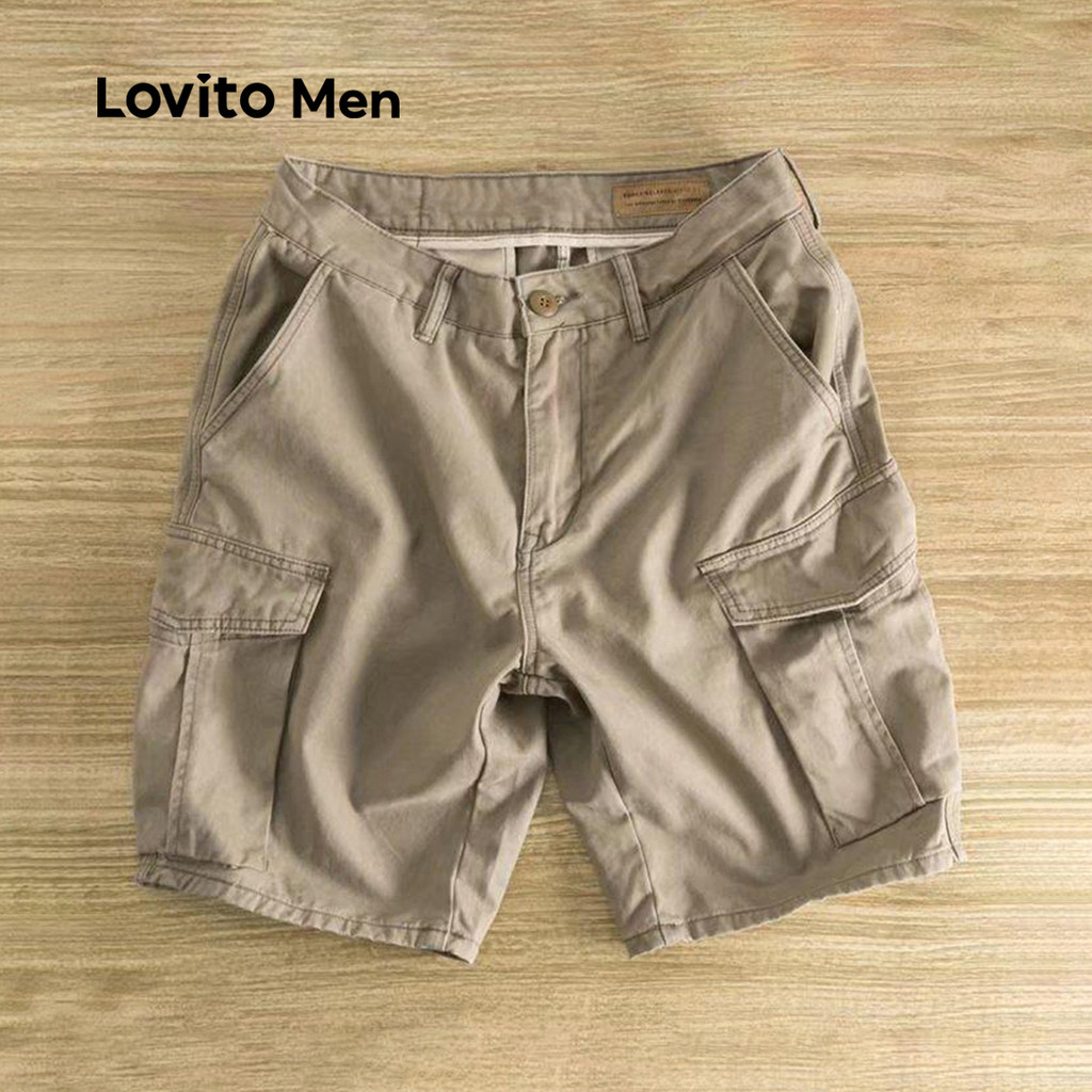 Lovito Shorts Casuais com Bolso para Todas As Estações Shorts Cáqui para Homens LNE110109