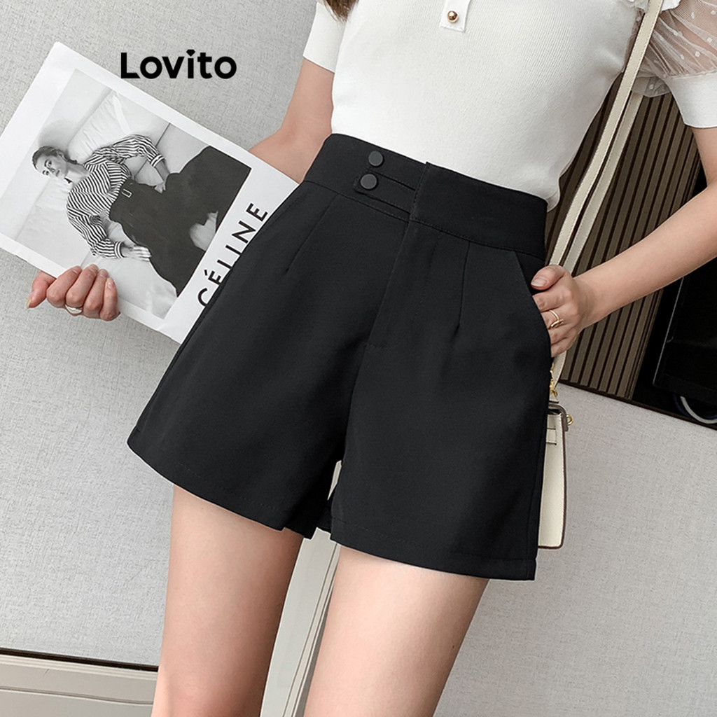 Lovito Shorts Casuais Lisos Com Bolso Duplo Para Mulheres LNE48267