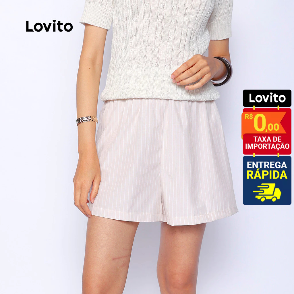 Lovito Shorts Casuais Listrados Femininos LB531BRL561