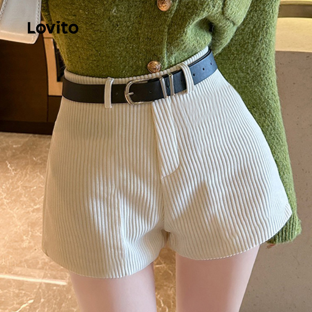 Lovito Shorts Casuais Plissados Clássicos e Versáteis para Outono/inverno Off-White L156AD028
