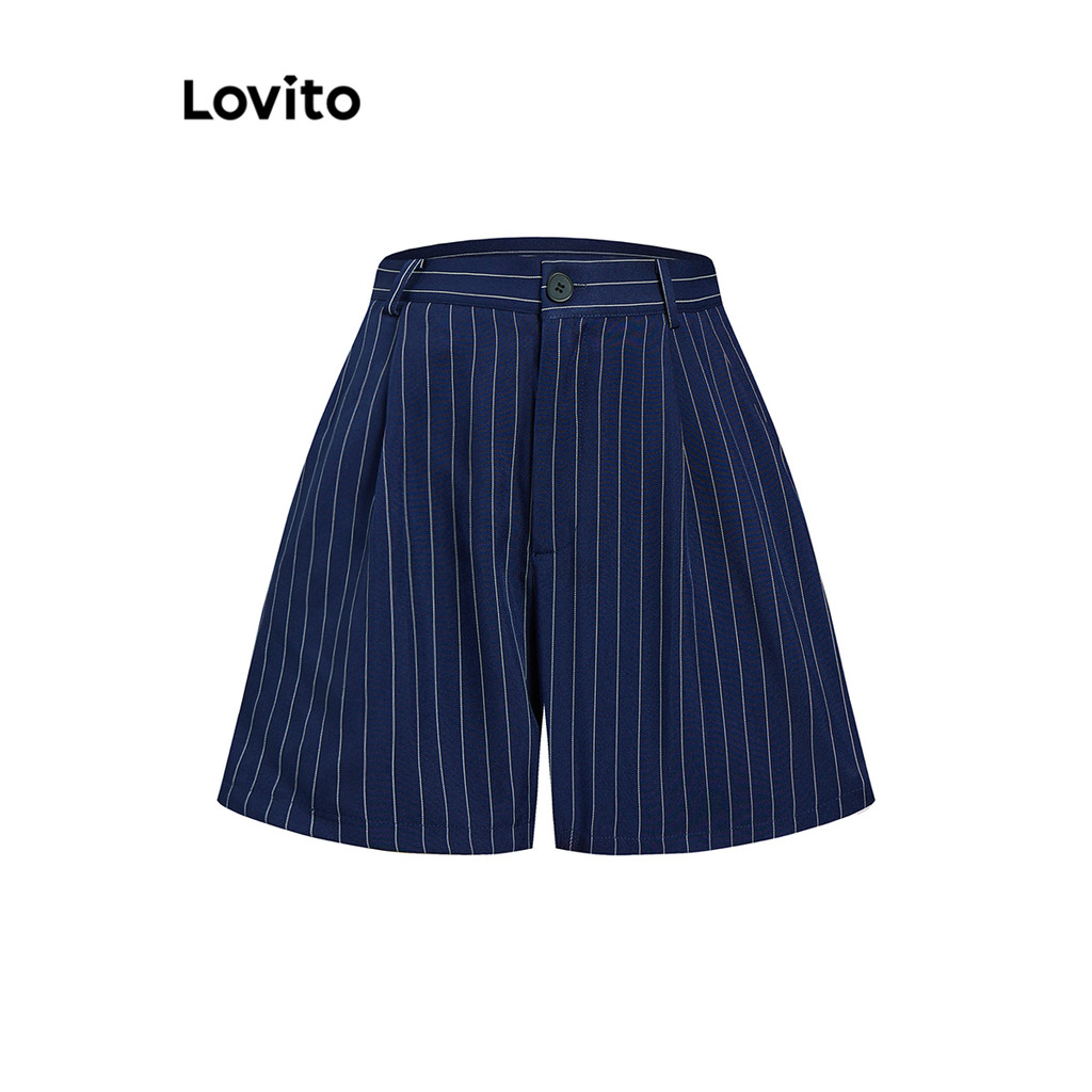 Lovito Shorts Elegantes Com Bolso Listrado Para Mulheres L105MD634