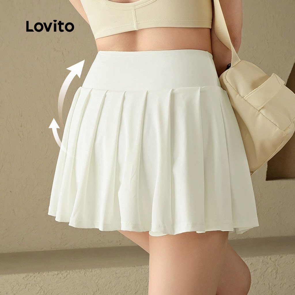 Lovito Shorts Esportivos 2 em 1 Saia+Calça frunces controle de barriga Corrida Yoga Pickleball Tênis Mulheres LNE112X053