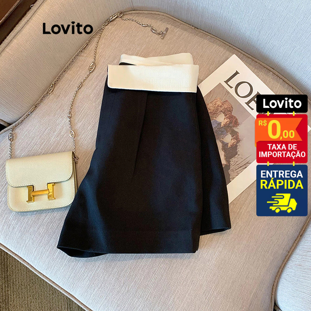 Lovito Shorts Feminino Curto com Cós Virado Contrastante LNE10075