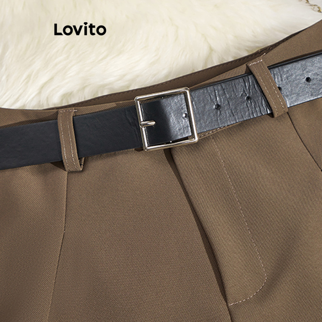 Lovito Shorts Femininos de Verão com Botão para Primavera/Verão, Casual, Cor Marrom, LNE29232