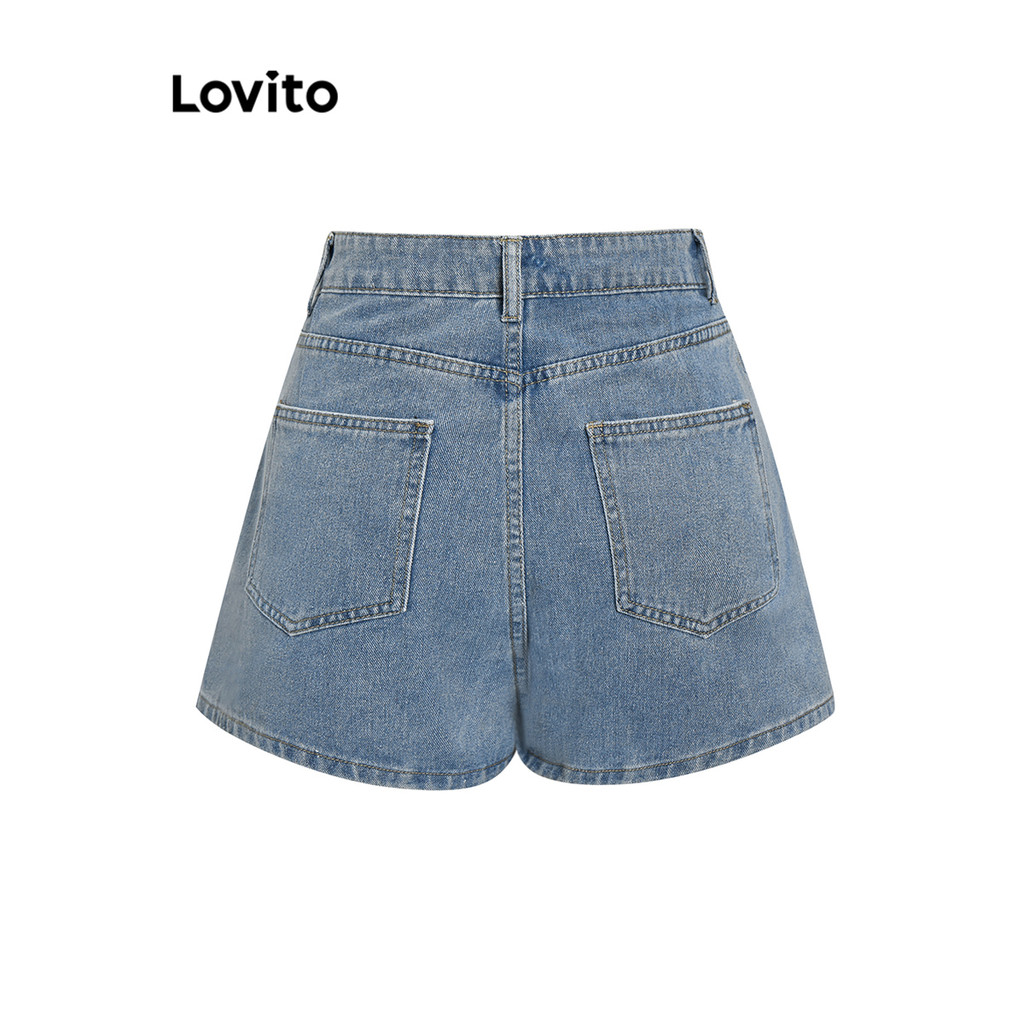Lovito Shorts Jeans Casual Com Bolso Dividido E Liso Para Mulheres L68ed114 (multicolorido)