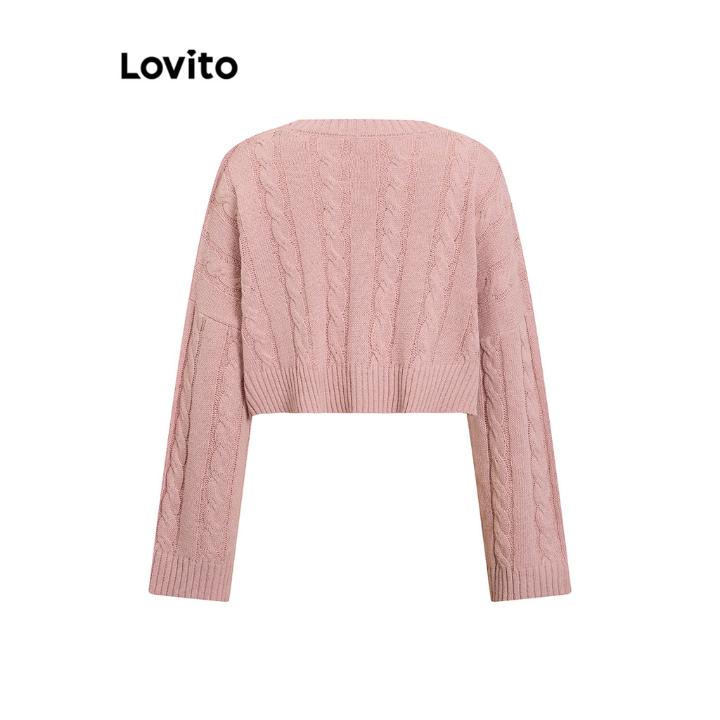 Lovito Suéter Casual Solto Suéter Jacquard Liso Para Mulheres L106AD130\4