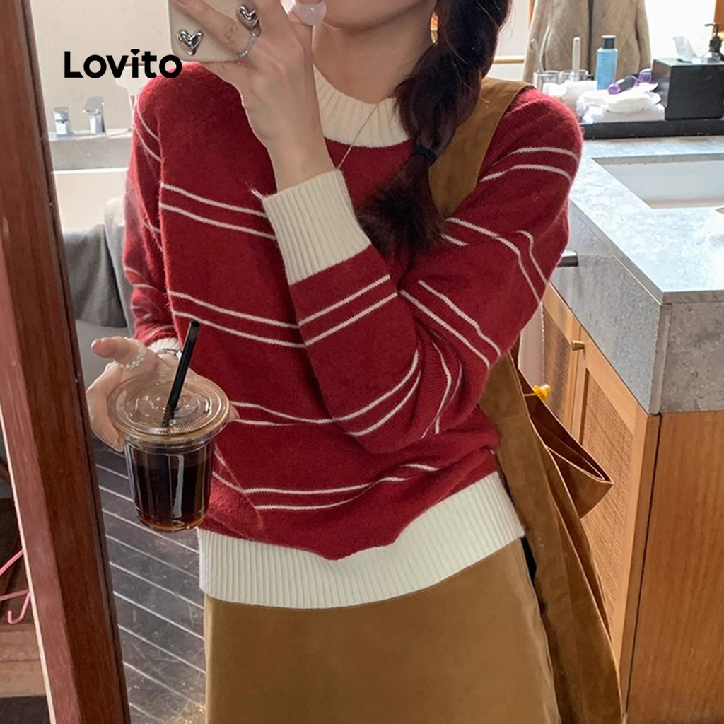 ✅DESTAQUES -❤️Encadernação de contraste -❤️Lazer -❤️Simples -❤️Amigável à pele e confortável -❤️outono e inverno ✅DESCRIÇÕES Estampa / Padrão:Listrado Estilo:Casual Tamanho Plus:Não Material:Poliéster Composição:95% Poliéster + 5% Spandex Tipo de modelagem:solto Transparência:Não Esticar:Leve alongamento Feito na China ✅O PACOTE INCLUI 1XSuéter ✅INTRODUÇÃO LOVITO A Lovito é uma marca em crescimento que acredita no poder das meninas. Estamos comprometidos em oferecer opções de roupas fashion e acessíveis, para todos os estilos, necessidades e identidades. Acreditamos que a moda deve ser divertida, liberadora e fazer você se sentir incrível. Afinal, o melhor acessório para qualquer look é a autoconfiança! ✅NOTAS DE COMPRA Antes de comprar, dê uma olhadinha na tabela de medidas disponível no site. Lembre-se de que, por serem feitas manualmente, as medidas podem variar de 1 a 2 cm. As cores dos produtos também podem ter pequenas diferenças em relação às fotos, dependendo da iluminação e das configurações do seu dispositivo. Siga nossa loja e conheça novos itens e as melhores ofertas para você!! Se você tiver alguma dúvida, converse conosco e responderemos o mais rápido possível.😊