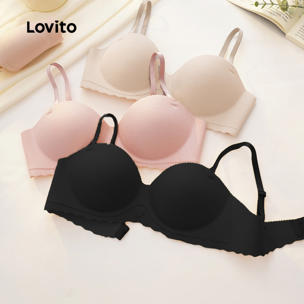✅DESTAQUES -❤️Sem costura -❤️Raciocínio e estrutura -❤️Adeus e confortáveis da pele -❤️Primavera e verão ✅DESCRIÇÕES Estampa / Padrão:Sem enfeite Estilo:Sexy Bojo:Almofadas fixas Bra Estilo:Sutiã de renda sem aro Cobertura do sutiã:Cobertura total Tamanho Plus:Não Material:Poliéster Composição:100% Poliester Tipo de modelagem: Slim Fit Transparência:Não Esticar:Alta elasticidade Feito na China ✅O PACOTE INCLUI 1XBralette ✅INTRODUÇÃO LOVITO A Lovito é uma marca em crescimento que acredita no poder das meninas. Estamos comprometidos em oferecer opções de roupas fashion e acessíveis, para todos os estilos, necessidades e identidades. Acreditamos que a moda deve ser divertida, liberadora e fazer você se sentir incrível. Afinal, o melhor acessório para qualquer look é a autoconfiança! ✅NOTAS DE COMPRA Antes de comprar, dê uma olhadinha na tabela de medidas disponível no site. Lembre-se de que, por serem feitas manualmente, as medidas podem variar de 1 a 2 cm. As cores dos produtos também podem ter pequenas diferenças em relação às fotos, dependendo da iluminação e das configurações do seu dispositivo. Siga nossa loja e conheça novos itens e as melhores ofertas para você!! Se você tiver alguma dúvida, converse conosco e responderemos o mais rápido possível.😊