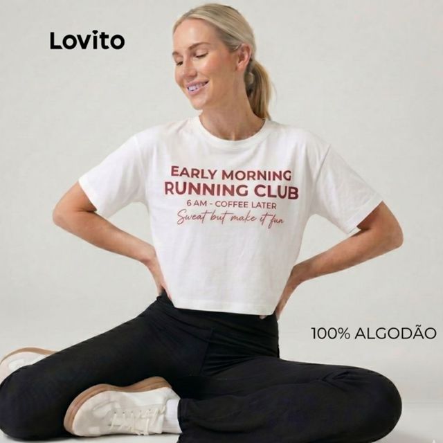 | Lovito T-shirt Feminina Esportiva Algodão Estampa Running Club BROT... este produto | R$ 34,90 | — | 5.0/5 | — |