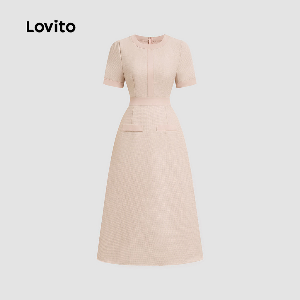 Lovito Tecido de Vestido Casual Costura Colorblock Jacquard Primavera/verão Vestido Rosa para mulheres. L172ED793