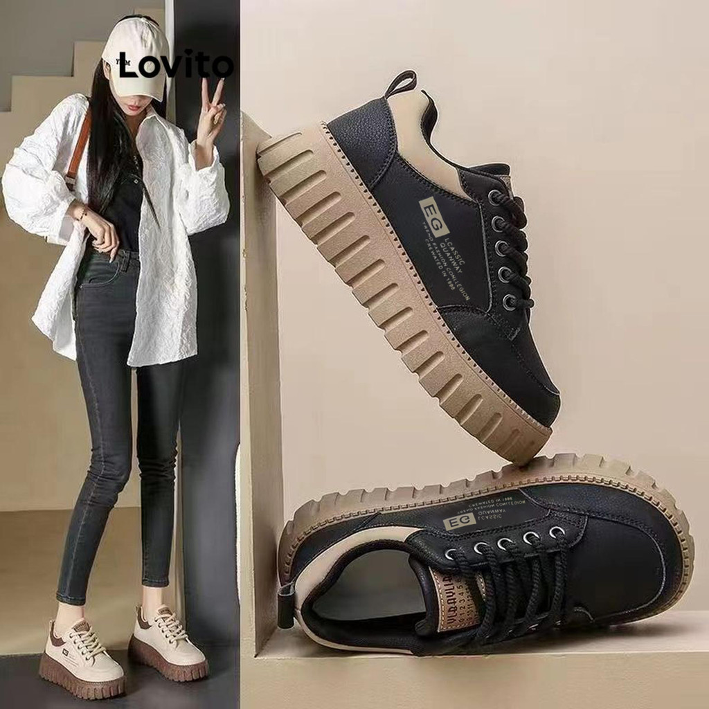 Lovito Tênis Casuais Simples Vintage Estilo Exército Alemão Versáteis para Mulheres LFA50008