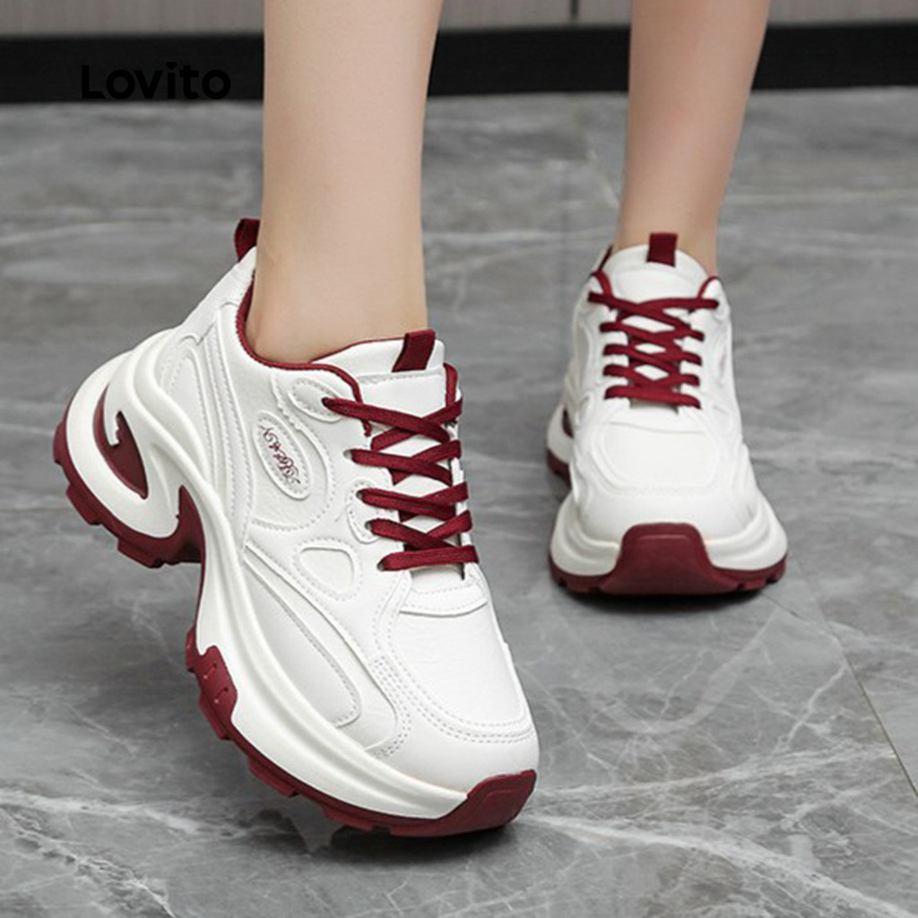 Lovito Tênis Esportivo Liso E Robusto Para Pai, Confortável, Academia Para Rua, Tênis Branco Para Mulheres LFA82146