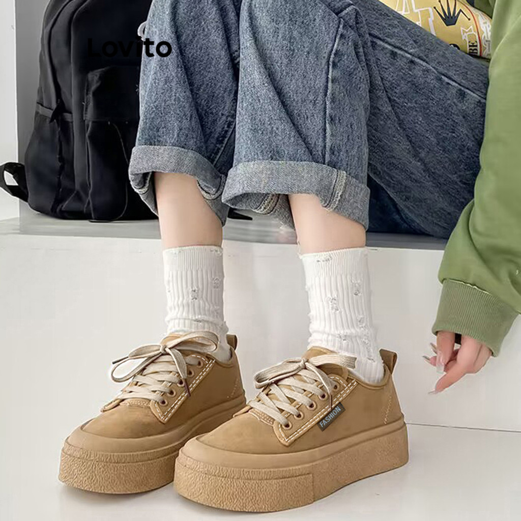 Lovito Tênis esportivos com sola grossa e aparência formal simples para mulheres LFA45405