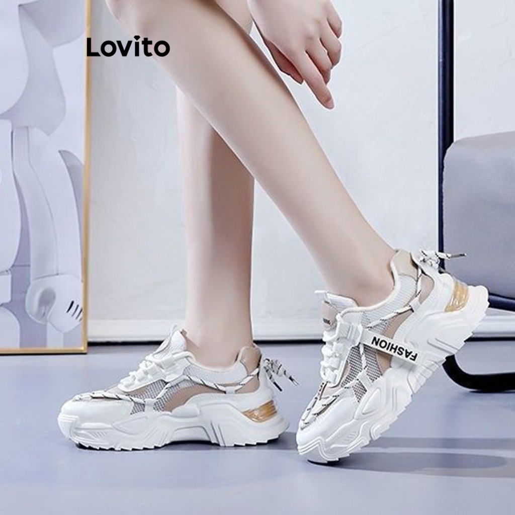 Lovito Tênis esportivos de malha com sola grossa para mulheres LFA60477\3