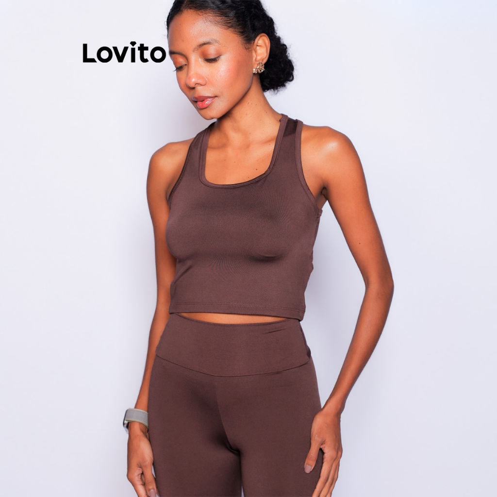 Lovito Top Basico Academia Basico Decote Quadrado Feminino PKB349BRL378