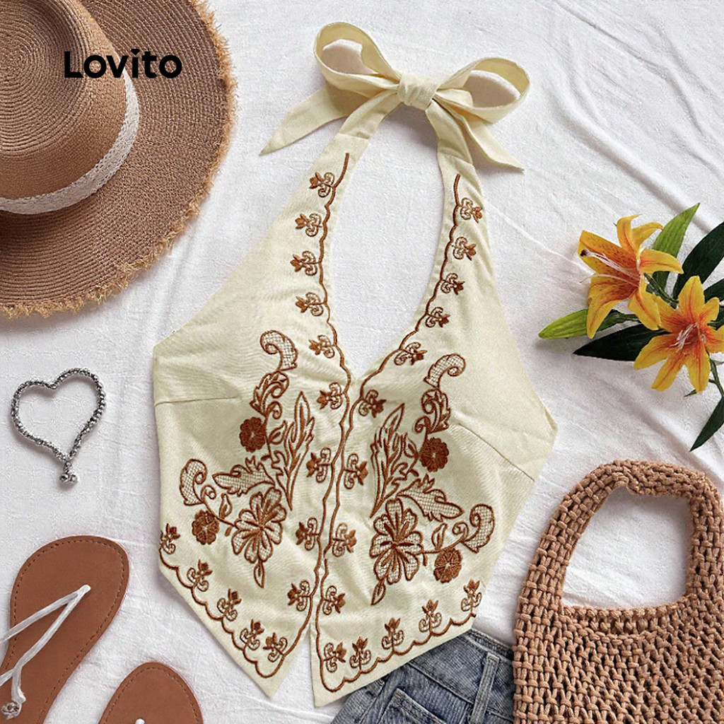 Lovito Top Boho com cadarço primavera/verão para mulheres LK3ED197