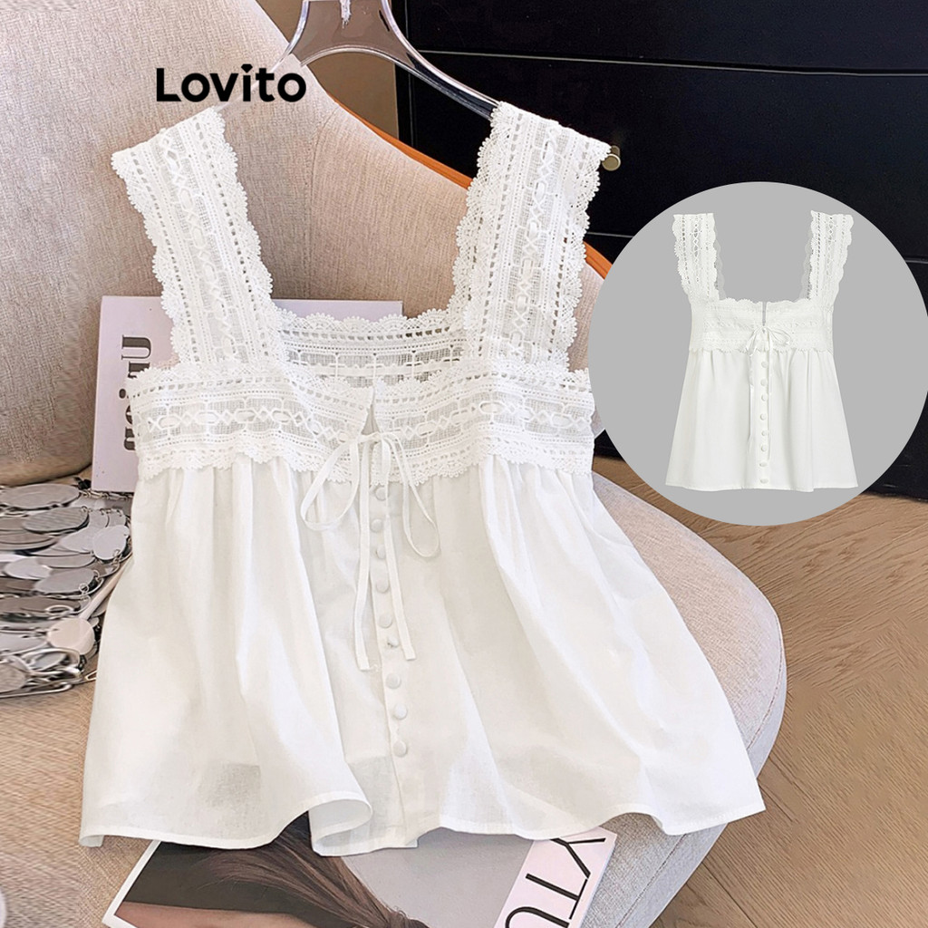 Lovito Top Boho Renda Lisa Regata Verão Primavera Feminina L100MD371