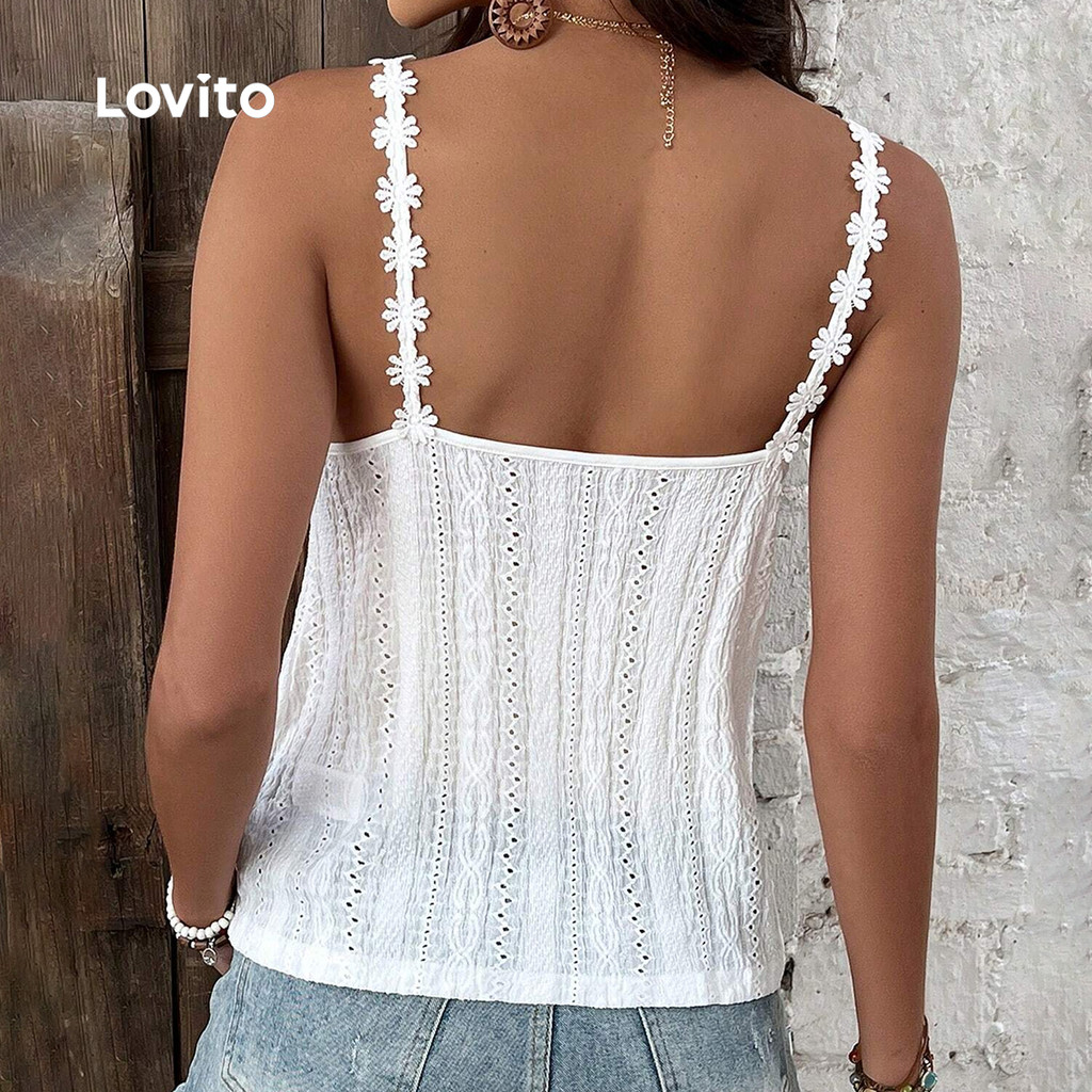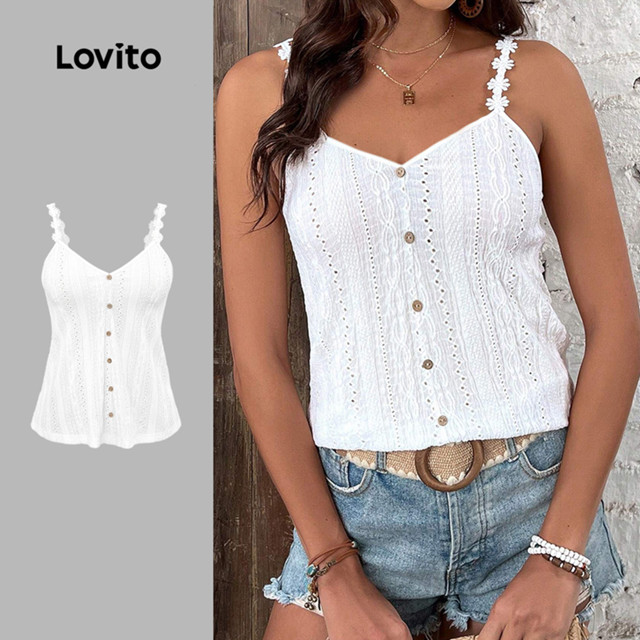 ✅DESTAQUES -❤️Renda -❤️Botão frontal -❤️Boa Textura -❤️Primavera e verão -❤️Fim de semana casual, feriado ✅DESCRIÇÕES Estampa / Padrão:Plain Estilo:Casual Tamanho Plus:No Material:Poliéster Composição:95%Polyester+5%Spandex Tipo de modelagem:Regular Fit Transparência:No Esticar:Medium Stretch Feito na China ✅O PACOTE INCLUI 1XPrincipal ✅INTRODUÇÃO LOVITO A Lovito é uma marca em crescimento que acredita no poder das meninas. Estamos comprometidos em oferecer opções de roupas fashion e acessíveis, para todos os estilos, necessidades e identidades. Acreditamos que a moda deve ser divertida, liberadora e fazer você se sentir incrível. Afinal, o melhor acessório para qualquer look é a autoconfiança! ✅NOTAS DE COMPRA Antes de comprar, dê uma olhadinha na tabela de medidas disponível no site. Lembre-se de que, por serem feitas manualmente, as medidas podem variar de 1 a 2 cm. As cores dos produtos também podem ter pequenas diferenças em relação às fotos, dependendo da iluminação e das configurações do seu dispositivo. Siga nossa loja e conheça novos itens e as melhores ofertas para você!! Se você tiver alguma dúvida, converse conosco e responderemos o mais rápido possível.